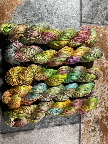 Custom dyed bamboo yarn. Please check for yardage in description as we’re still testing different brands ❤️ These will arrive to you in a winded cake.