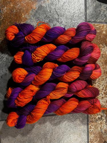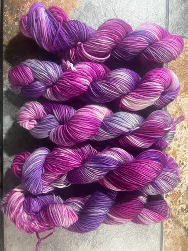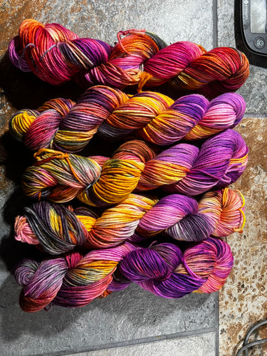 Hand dyed wool creations by Laura. Please check for size and yardage before ordering. These will be sent in the form of hanks unless a ball or cake is requested in comments or through email.