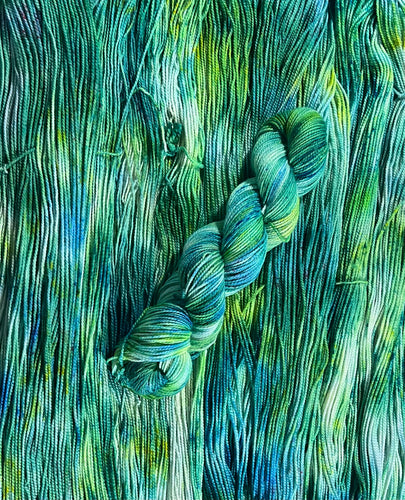 Hand dyed wool creations by Laura. Please check for size and yardage before ordering. These will be sent in the form of hanks unless a ball or cake is requested in comments or through email.