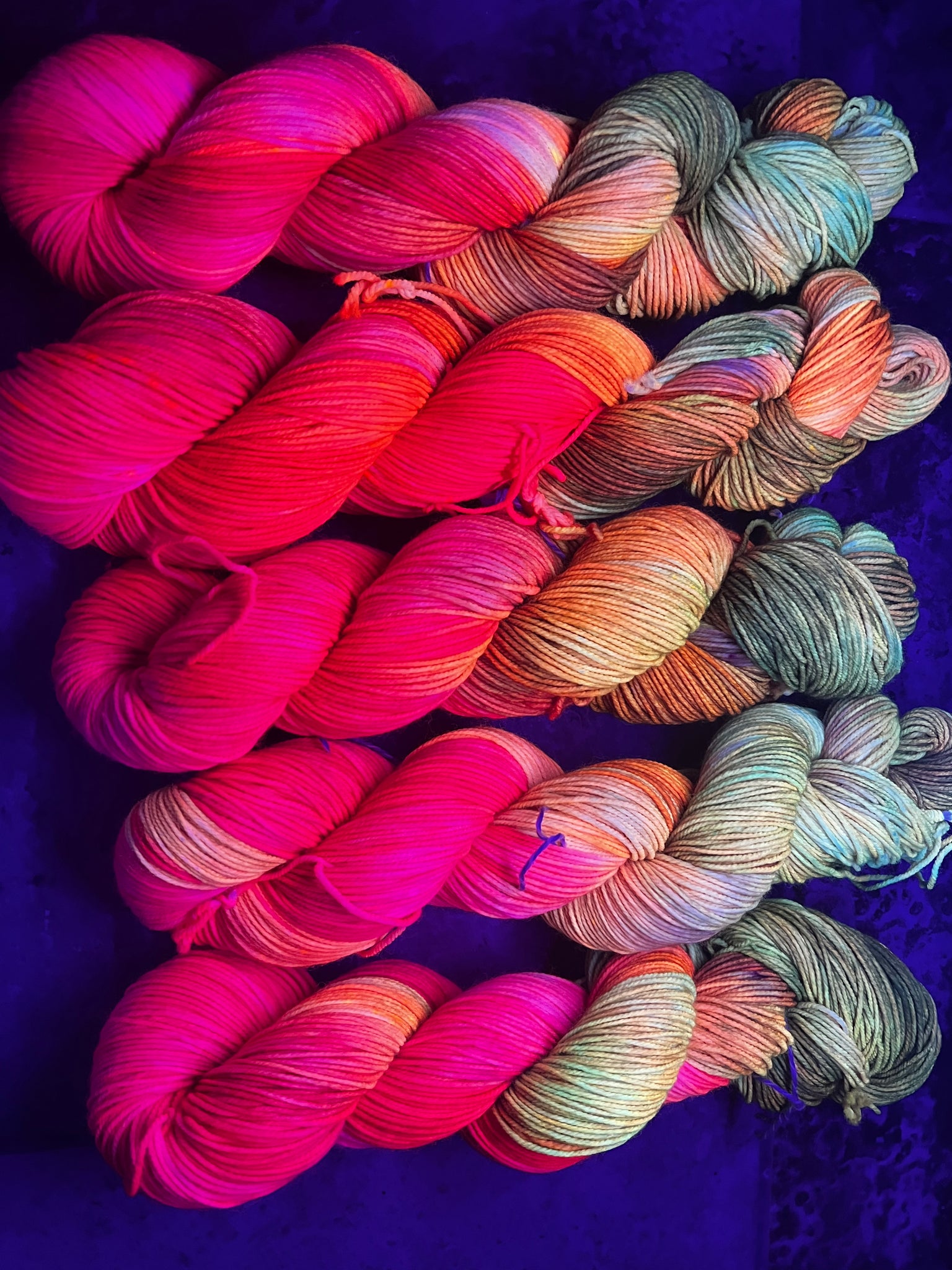 As usual, these are all similar, but none will be exactly the same. That’s the joy of hand dyed. You have something unique. In cases where someone buys multiple of a color, I always do my best to find the ones that are most similar to send together.