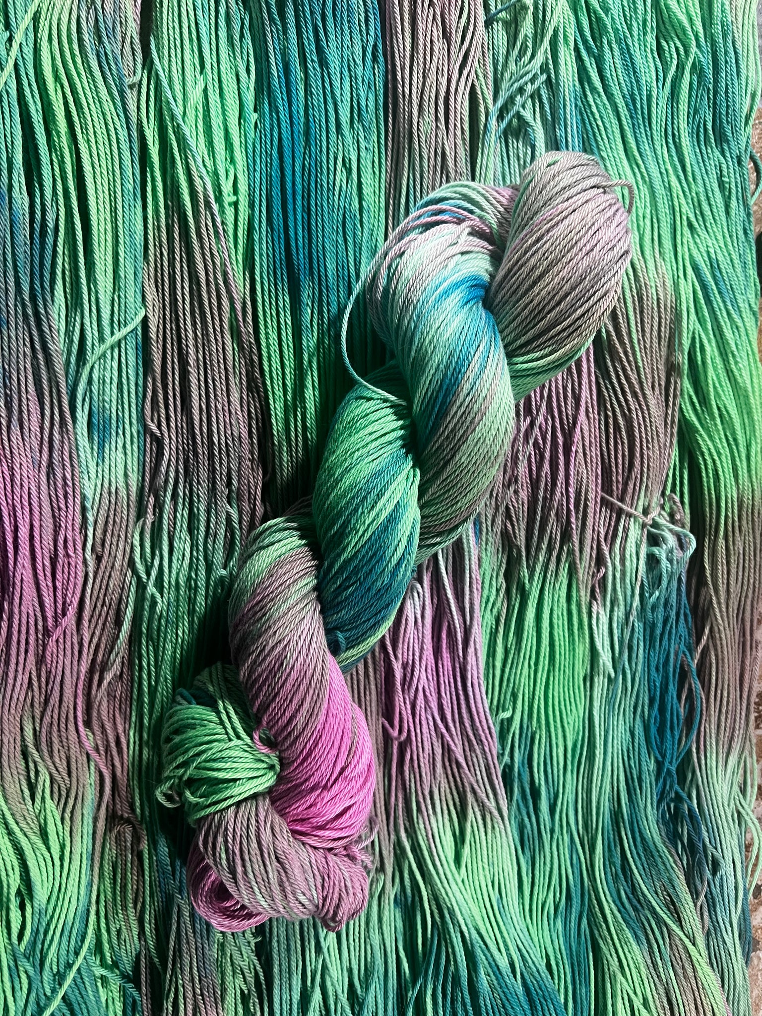 Enchanted is yet another from doing my fae dyes. I wanted something that reminds me of a fairy child. Sweet and soft colors that could fly if you whispered the right words… if that makes any sense. I never make sense. Get used to it.