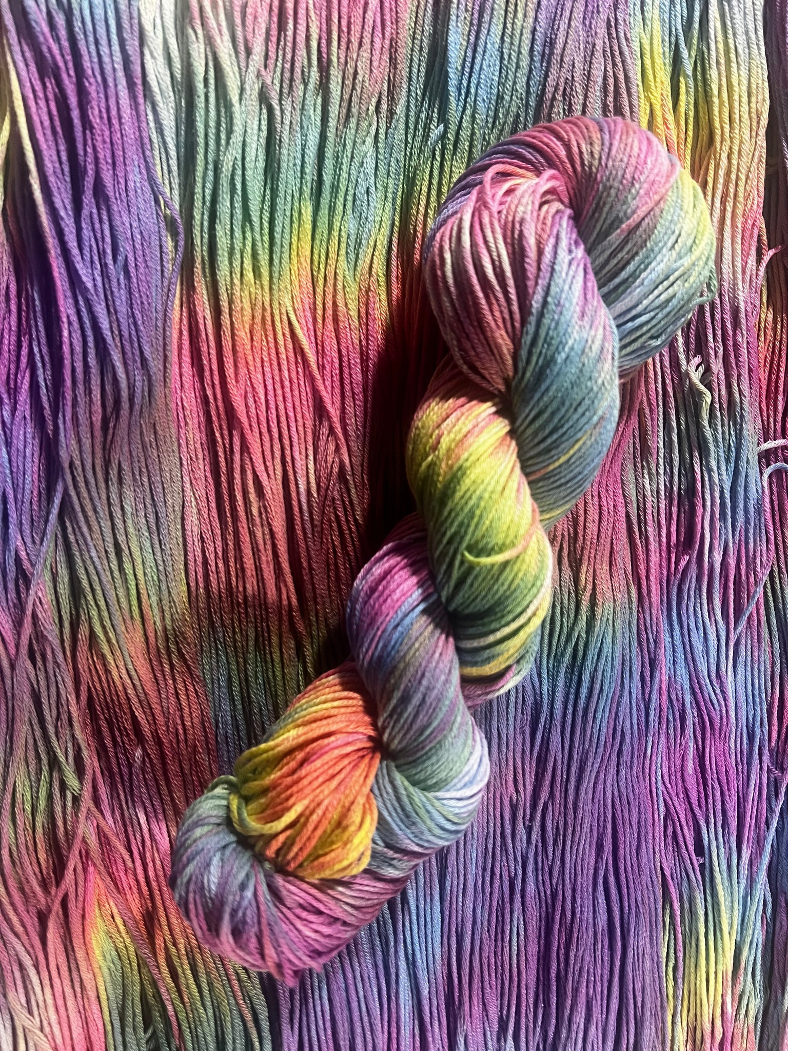 I had done prism before on wool and wanted to try the technique on cotton. The cotton didn’t work so well but the coboo mix absolutely took the technique well. I’m so proud of this little baby.